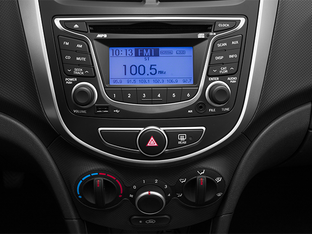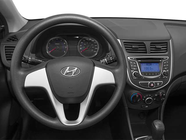 This 2014 Hyundai Accent GS in Marathon Blue Pearl is nicely equipped with the following features Option Group 1, Black Cloth, 14 x 5.0J Steel w/Full Wheel Covers Wheels, 6 Speakers, ABS brakes, Air Conditioning, AM/FM radio: SiriusXM, Anti-whiplash front head restraints, Brake assist, Bumpers: body-color, Cargo Tray, Carpeted Floor Mats, CD player, Cloth Seat Trim, Driver door bin, Driver vanity mirror, Dual front impact airbags, Dual front side impact airbags, Electronic Stability Control, Front anti-roll bar, Front Bucket Seats, Front reading lights, Front wheel independent suspension, Heated door mirrors, Illuminated entry, Low tire pressure warning, Occupant sensing airbag, Overhead airbag, Overhead console, Panic alarm, Passenger door bin, Passenger vanity mirror, Power door mirrors, Power steering, Power windows, Radio: AM/FM/SiriusXM/CD/MP3 Audio System, Rear window defroster, Rear window wiper, Remote keyless entry, Speed control, Speed-sensing steering, Split folding rear seat, Tachometer, Tilt steering wheel, Traction control, and Trip computer.