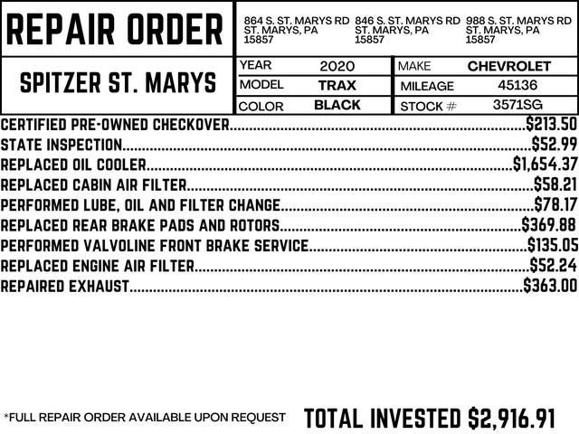 *This Low Mileage Trax Was Very Well Maintained. With Great Gas Mileage It Would Be The Perfect Vehicle For Road Trips Or Just Back And Forth To Work.* Backup Camera, All Weather Mats, 7 Touchscreen Display, Apple CarPlay, Android Auto, Air Conditioning, Keyless Entry, Power Locks, Power Windows, Power Locks, Tilt And Telescopic Steering Wheel, Bluetooth®, OnStar, MP3, Rear Windshield Wiper, ECOTEC 1.4L I4 SMPI DOHC Turbocharged VVT, Mosaic Black Metallic, Black Cloth.
