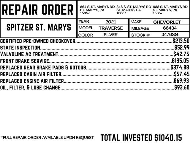 2021 Chevrolet Traverse 4D Sport Utility LT 1LT AWD CARFAX One-Owner. Clean CARFAX.