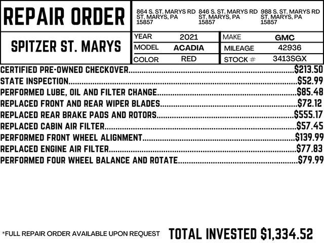 2021 GMC Acadia 4D Sport Utility SLT AWD CARFAX One-Owner.