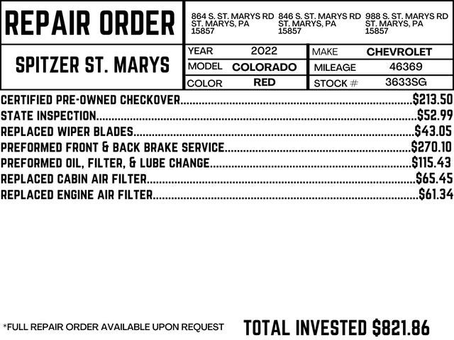 2022 Chevrolet Colorado LT 4WD CARFAX One-Owner.