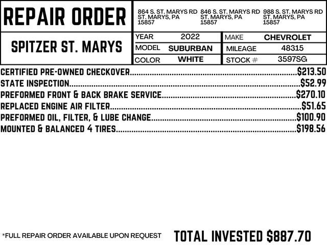 2022 Chevrolet Suburban 4D Sport Utility High Country 4WD CARFAX One-Owner. Clean CARFAX.