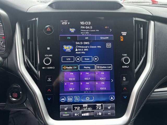 Spitzer Certified Certified, 12 Speakers, 4-Wheel Disc Brakes, ABS brakes, Air Conditioning, Alloy wheels, AM/FM radio: SiriusXM, Anti-whiplash front head restraints, Auto High-beam Headlights, Auto-dimming Rear-View mirror, Automatic temperature control, Brake assist, Bumpers: body-color, Compass, Driver door bin, Driver vanity mirror, Dual front impact airbags, Dual front side impact airbags, Electronic Stability Control, Emergency communication system, Exterior Parking Camera Rear, Four wheel independent suspension, Front anti-roll bar, Front Bucket Seats, Front Center Armrest w/Storage, Front dual zone A/C, Front fog lights, Front reading lights, Fully automatic headlights, Garage door transmitter: HomeLink, harman/kardon® Speakers, Heated door mirrors, Heated Front Bucket Seats, Heated front seats, Heated rear seats, Illuminated entry, Knee airbag, Leather Shift Knob, Leather steering wheel, Low tire pressure warning, Memory seat, Occupant sensing airbag, Outside temperature display, Overhead airbag, Overhead console, Panic alarm, Passenger door bin, Passenger vanity mirror, Perforated Leather-Trimmed Upholstery, Power door mirrors, Power driver seat, Power passenger seat, Power steering, Power windows, Radio: Subaru STARLINK 11.6 Multimedia Plus Sys, Rear anti-roll bar, Rear seat center armrest, Rear window defroster, Remote keyless entry, Security system, Speed control, Speed-sensing steering, Split folding rear seat, STARLINK/Apple CarPlay/Android Auto, Steering wheel mounted audio controls, Tachometer, Telescoping steering wheel, Tilt steering wheel, Traction control, Trip computer, Turn signal indicator mirrors, Variably intermittent wipers, Wheels: 18 x 7.5J Aluminum-Alloy Black.