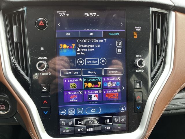 This 2022 Subaru Outback Touring XT in Cinnamon Brown Pearl is nicely equipped with the following features Popular Package #2 (All-Weather Floor Liners, Auto-Dimming Exterior Mirror w/Approach Light, Dome Light LED Upgrade, Rear Bumper Cover, Rear Seat Back Protector, and Splash Guards), Standard Model, 12 Speakers, 4-Wheel Disc Brakes, 4.111 Axle Ratio, ABS brakes, Air Conditioning, Alloy wheels, AM/FM radio: SiriusXM, Auto High-beam Headlights, Auto-dimming Rear-View mirror, Automatic temperature control, Brake assist, Bumpers: body-color, Cargo Net, Cinnamon Brown Pearl Body Side Molding, Compass, Driver door bin, Driver vanity mirror, Dual front impact airbags, Dual front side impact airbags, Electronic Stability Control, Emergency communication system: STARLINK Safety and Security (Subscription Required), Exterior Parking Camera Rear, Four wheel independent suspension, Front anti-roll bar, Front Bucket Seats, Front Center Armrest w/Storage, Front dual zone A/C, Front fog lights, Front reading lights, Fully automatic headlights, Garage door transmitter: HomeLink, harman/kardon® Speakers, Heated & Ventilated Front Bucket Seats, Heated door mirrors, Heated front seats, Heated rear seats, Heated steering wheel, HVAC memory, Illuminated entry, Knee airbag, Leather steering wheel, Low tire pressure warning, Memory seat, Navigation System, Occupant sensing airbag, Outside temperature display, Overhead airbag, Overhead console, Panic alarm, Passenger door bin, Passenger vanity mirror, Perforated Nappa Leather-Trimmed Upholstery, Power door mirrors, Power driver seat, Power Liftgate, Power moonroof, Power passenger seat, Power steering, Power windows, Radio: Subaru STARLINK 11.6 Multimedia Nav System, Rear anti-roll bar, Rear seat center armrest, Rear window defroster, Rear window wiper, Remote CD player, Remote keyless entry, Roof rack, Security system, Speed control, Speed-sensing steering, Split folding rear seat, Spoiler, STARLINK/Apple CarPlay/Android Auto, Steering wheel mounted audio controls, Steering Wheel Paddle Shift Control Switches, Tachometer, Telescoping steering wheel, Tilt steering wheel, Traction control, Trip computer, Turn signal indicator mirrors, Variably intermittent wipers, Ventilated front seats, and Wheels: 18 x 7J Black Aluminum Alloy.