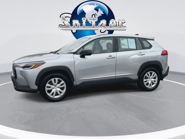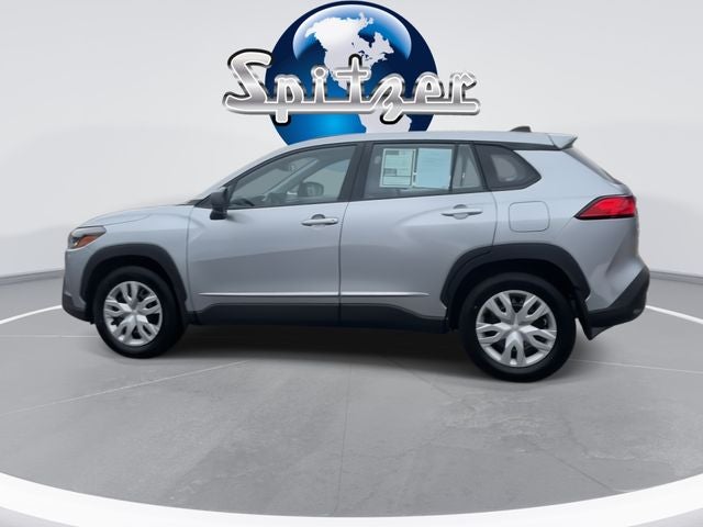 Sonic Silver 2022 Toyota Corolla Cross L AWD CVT 2.0L I4 PDI DOHC 16V LEV3-SULEV30 169hp 4-Wheel Disc Brakes, 4.014 Axle Ratio, 6 Speakers, ABS brakes, Air Conditioning, AM/FM radio: SiriusXM, Apple CarPlay/Android Auto, Auto High-beam Headlights, Brake assist, Bumpers: body-color, Delay-off headlights, Driver door bin, Driver vanity mirror, Dual front impact airbags, Dual front side impact airbags, Electronic Stability Control, Emergency communication system: Safety Connect with 1-year trial, Exterior Parking Camera Rear, Fabric Seat Trim, Four wheel independent suspension, Front anti-roll bar, Front Bucket Seats, Front Center Armrest, Front reading lights, Heated door mirrors, Illuminated entry, Knee airbag, Low tire pressure warning, Occupant sensing airbag, Outside temperature display, Overhead airbag, Panic alarm, Passenger door bin, Passenger vanity mirror, Power door mirrors, Power steering, Power windows, Radio data system, Radio: 6 Speaker Audio, Rear anti-roll bar, Rear side impact airbag, Rear window defroster, Remote keyless entry, Security system, Speed control, Split folding rear seat, Spoiler, Steering wheel mounted audio controls, Tachometer, Telescoping steering wheel, Tilt steering wheel, Traction control, Trip computer, Wheels: 17 Steel w/Silver Wheel Covers.