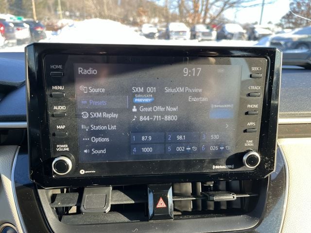 This 2022 Toyota Corolla Hybrid LE in is nicely equipped with the following features 1.8L DOHC 16V VVT, 4-Wheel Disc Brakes, 6 Speakers, ABS brakes, Air Conditioning, Alloy wheels, AM/FM radio: SiriusXM, Apple CarPlay/Android Auto, Auto High-beam Headlights, Automatic temperature control, Brake assist, Bumpers: body-color, Delay-off headlights, Driver door bin, Driver vanity mirror, Dual front impact airbags, Dual front side impact airbags, Electronic Stability Control, Emergency communication system: Safety Connect with 1-year trial, Exterior Parking Camera Rear, Four wheel independent suspension, Front anti-roll bar, Front Bucket Seats, Front Center Armrest, Front reading lights, Fully automatic headlights, Heated door mirrors, Illuminated entry, Knee airbag, Low tire pressure warning, Occupant sensing airbag, Outside temperature display, Overhead airbag, Panic alarm, Passenger door bin, Passenger vanity mirror, Power door mirrors, Power steering, Power windows, Premium Fabric Seat Trim, Radio data system, Radio: Audio AM/FM, Rear anti-roll bar, Rear seat center armrest, Rear side impact airbag, Rear window defroster, Remote keyless entry, Security system, Speed control, Split folding rear seat, Steering wheel mounted audio controls, Tachometer, Telescoping steering wheel, Tilt steering wheel, Traction control, Trip computer, Variably intermittent wipers, and Wheels: 15 Alloy w/Cover.