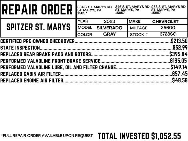 *Customers Lease Was Coming Up And To Upgrade To A GMC Sierra AT4 Diesel* Black Heated Cloth Seats, Tilt And Telescoping Steering Wheel, Cruise Control, Power Locks And Windows, Heated Power Mirrors, Heated Steering Wheel, Surround View Camera, Parking Sensors, Remote Start, Keyless Entry, 16.6” Touch Screen, Air Conditioning, Universal Home Remote, All Weather Liners, Z71 Package, Convenience Package, Bluetooth®, Sirius XM Radio, OnStar, Mp3 Player, Bose Premium Sound System, Spray-In Bed Liner, Running Boards, Trailer Brake Controller, Towing Package, Off Road Package, Power Sliding Rear Window, EZ Lift Tailgate, Rough Country Under Seat Storage, All Star Plus Package, Safety Package, Rear Park Assist, Multi Flex Tailgate. EcoTec3 6.2L V8, Sterling Gray Metallic, Black Cloth.