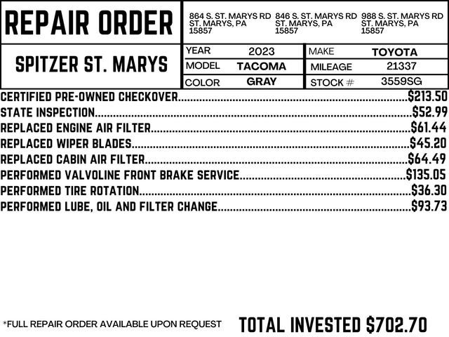 2023 Toyota Tacoma 4D Double Cab Trail Edition V6 4WD CARFAX One-Owner. Clean CARFAX.