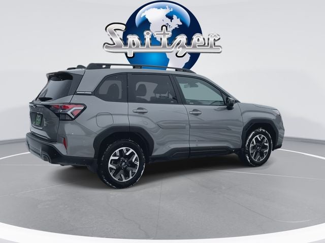 Certified. River Rock Pearl 2025 Subaru Forester Premium AWD Lineartronic CVT 2.5L 4-Cylinder DOHC 16V Spitzer Certified Certified, 4-Wheel Disc Brakes, 6 Speakers, ABS brakes, Air Conditioning, Alloy wheels, AM/FM radio: SiriusXM with 360L, Anti-whiplash front head restraints, Auto High-beam Headlights, Automatic Emergency Steering, Automatic temperature control, Blind-Spot Detection (BSD)/RCTA System, Body Side Molding - River Rock Pearl, Brake assist, Bumpers: body-color, Cargo Tray, Driver door bin, Driver vanity mirror, Dual front impact airbags, Dual front side impact airbags, Electronic Stability Control, Emergency communication system: MySubaru Safety (3-year free trial), Exterior Parking Camera Rear, Four wheel independent suspension, Front anti-roll bar, Front Bucket Seats, Front Center Armrest, Front dual zone A/C, Front fog lights, Front reading lights, Fully automatic headlights, Heated door mirrors, Heated Front Bucket Seats, Heated front seats, Illuminated entry, Knee airbag, Leather steering wheel, Low tire pressure warning, Occupant sensing airbag, Outside temperature display, Overhead airbag, Overhead console, Panic alarm, Passenger door bin, Passenger vanity mirror, Power door mirrors, Power driver seat, Power moonroof: Panoramic, Power Rear Gate, Power Rear Gate & Blind Spot Detection w/RCTA, Power steering, Power windows, Premium Textured Cloth Upholstery, Radio data system, Radio: Subaru 11.6 Multimedia Plus System, Rear anti-roll bar, Rear Bumper Cover, Rear seat center armrest, Rear Seatback Protector, Rear window defroster, Rear window wiper, Remote keyless entry, Security system, Speed control, Speed-sensing steering, Splash Guards, Split folding rear seat, Spoiler, Steering wheel mounted audio controls, Tachometer, Telescoping steering wheel, Tilt steering wheel, Traction control, Trip computer, Variably intermittent wipers, Wheels: 17 x 7.0 J Dark Metallic Aluminum-Alloy.